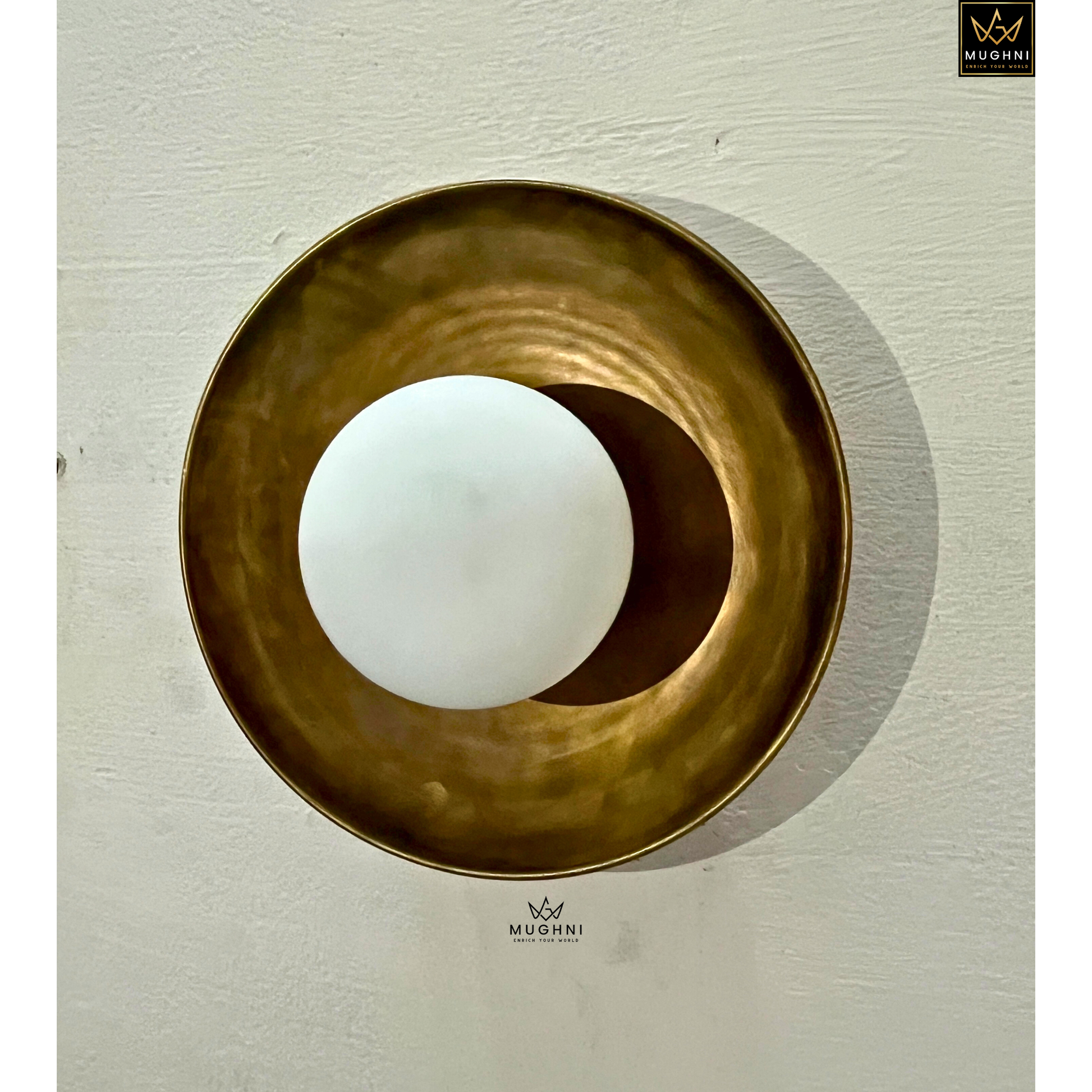 Add timeless vintage charm to your interior with this handcrafted antique brass wall sconce by Mughni Lighting. Featuring a solid brass backplate and a frosted glass globe, this wall lamp creates a soft, warm glow that enhances the ambiance of any space while serving as a stylish décor element.