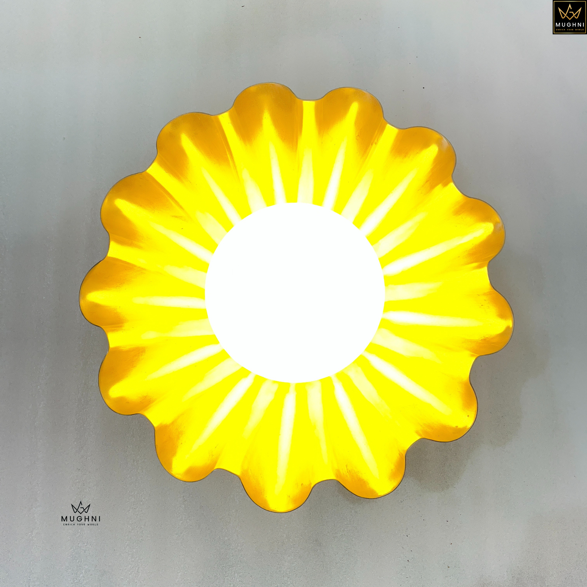 Illuminate your space with this elegant handcrafted floral wall sconce, designed to bring timeless charm and warm ambient lighting to any interior. Featuring a beautifully sculpted petal-inspired brass shade with a soft frosted globe center, this fixture blends vintage aesthetics with modern craftsmanship. Perfect for bedrooms, hallways, living rooms, or boutique interiors, this decorative light creates a cozy and luxurious atmosphere.